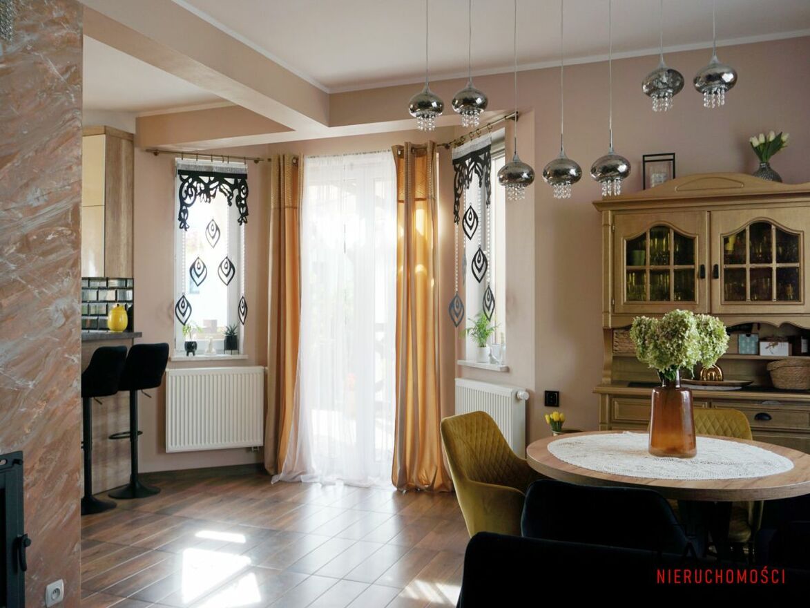 - nieruchomość ogrzewana jest przez piec w kotłowni (można korzystać z ekogroszku lub pelletu). W salonie znajduje się dodatkowo kominek.