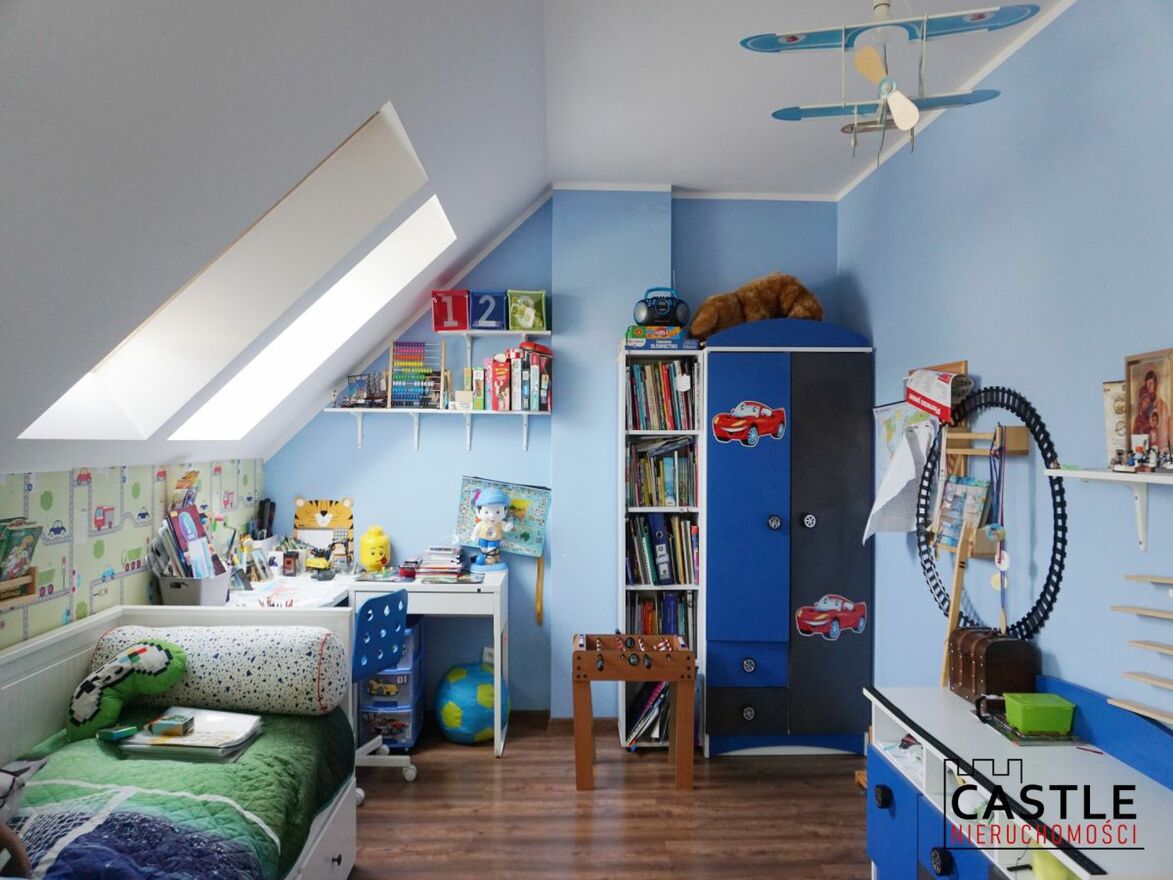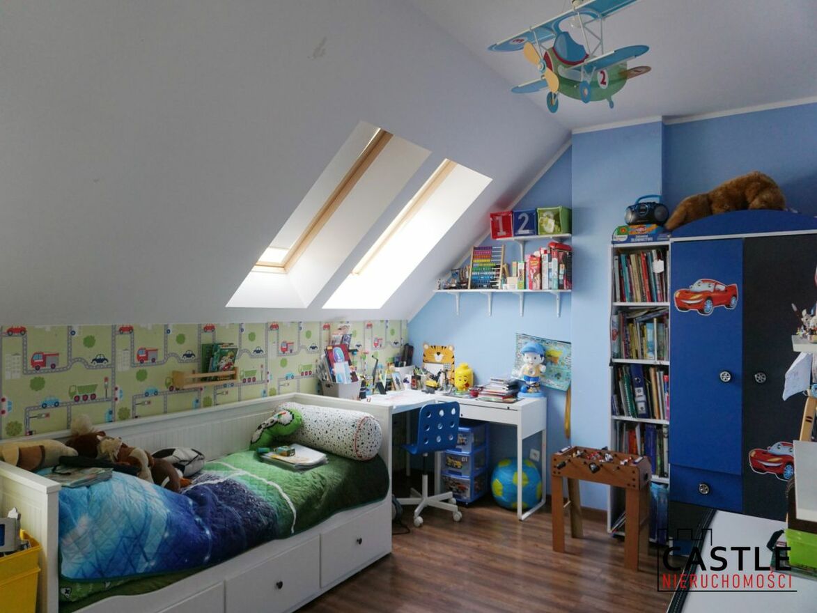 - w pokojach na piętrze znajdują się okna dachowe